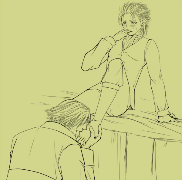菜っ葉様よりwww 「2様がバージルにいろいろ教えてあげちゃう妄想」のキスの次は足の指舐めを書いていました。 が、そこに降って湧いたショタ兄妄想で話がそちらにシフトしてしまい、結局執事兄ではお蔵入りとなってしまった話。 これはショタ兄が出てくる前に「足の指舐めるのっていいよね!」って話をしたときに描いてくださったものです。 でもショタでも足指舐めてあげたよw